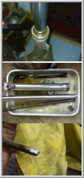 8.รูปชิ้นส่วนโช๊คที่ถอดแล้วและเครื่องมือพิเศษ(ขออภัยรูปไม่ชัด)