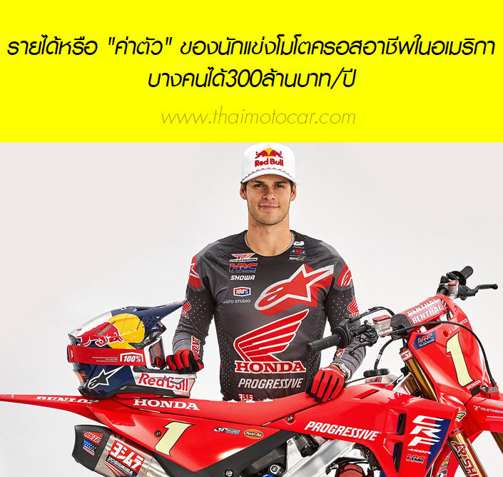 รายได้หรือ “ค่าตัว” ของนักแข่งโมโตครอสอาชีพในอเมริกา บางคนได้300ล้านบาท/ปี
